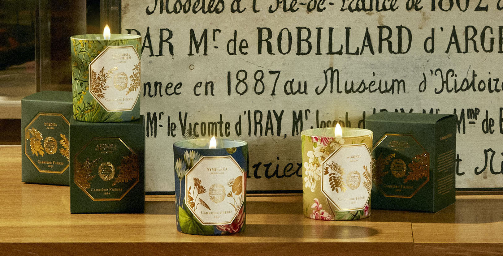 法國頂級香氛品牌 Carrière Frères 創立於 1884 年,擅長以植物圖鑑為靈感,將植物香氣完整保留到高品質香氛中,此次特別與博物館攜手合作,擷取三種富有異國情調的獨特植物——苦艾、刺槐、睡蓮,並結合博物館的館藏歷史插畫,向人們揭示古老植物的自然形態,共同以香氛藝術,勾勒出珍貴難得的自然之美。