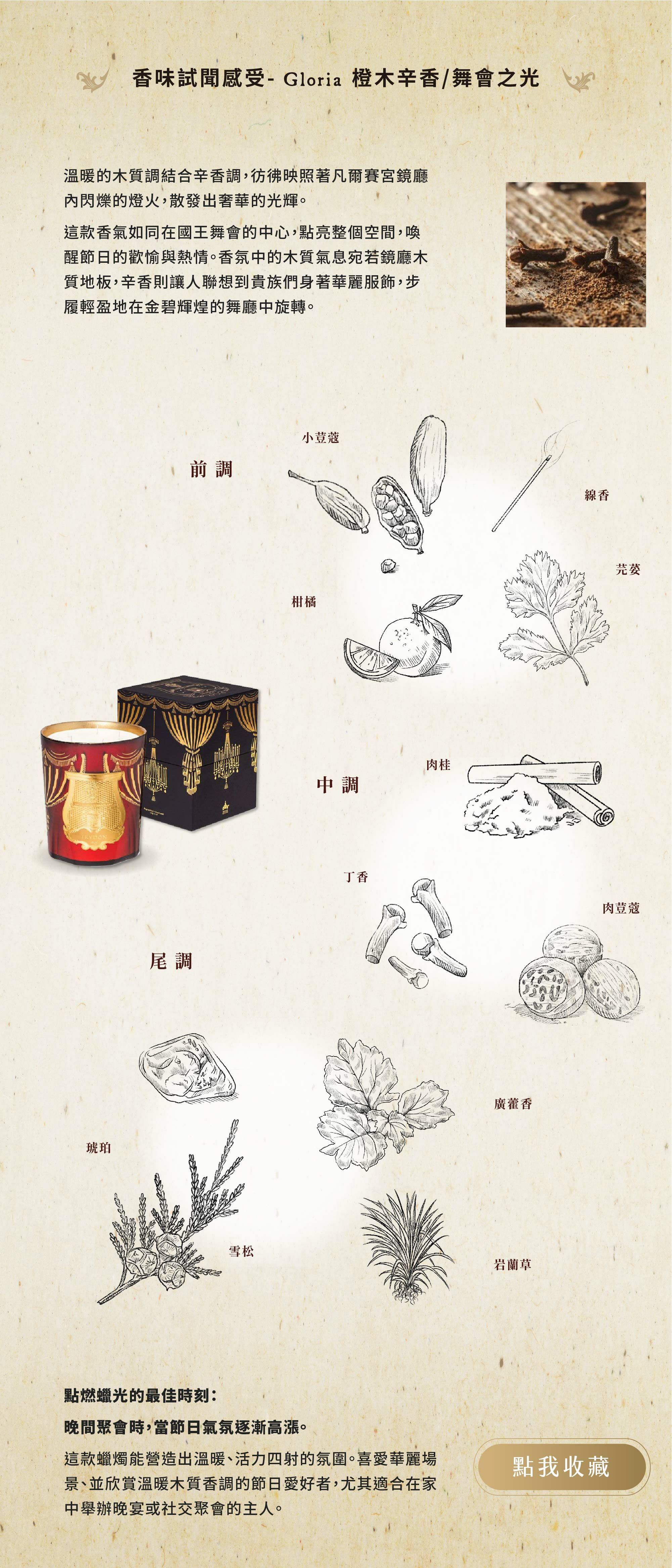前調:小荳蔻、芫荽、線香、柑橘