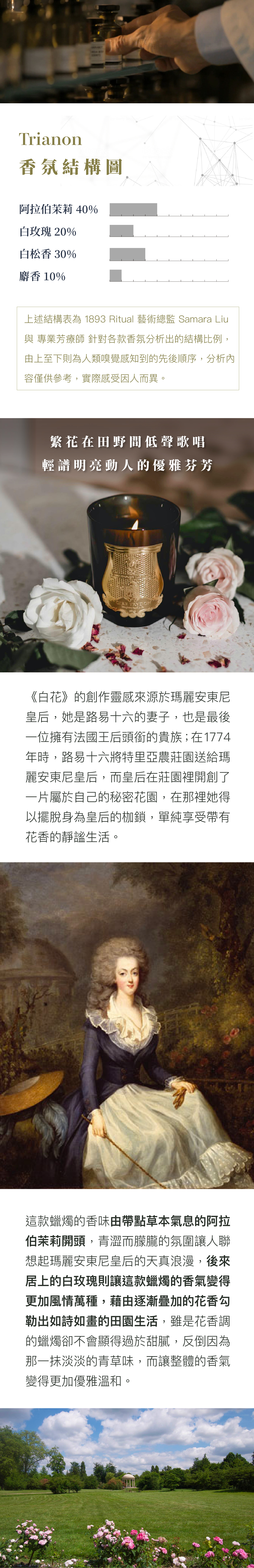 作為歷代皇室路易十三、十四、拿破崙及瑪麗皇后等貴族專屬御用蠟工坊,沿襲近四百年傳統工藝,
