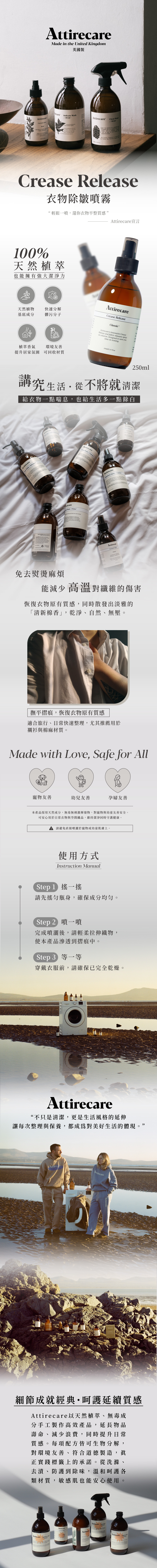 使用 Attirecare 的衣物除皺噴霧,輕鬆擺脫熨燙的煩惱。