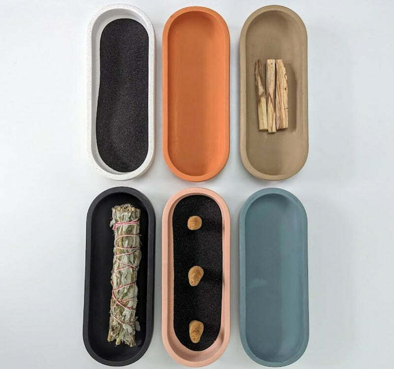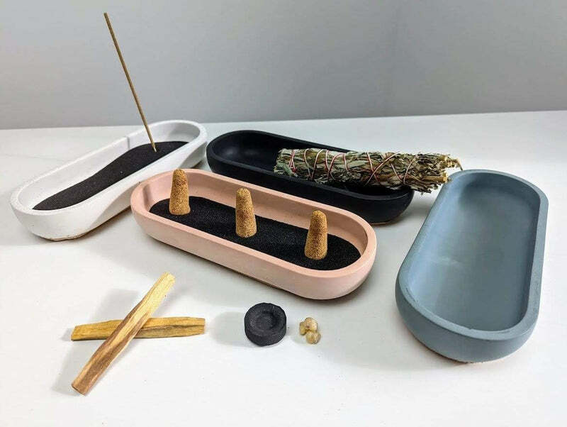 手工製作的燃燒器,將您的香直立放入沙床或小石頭中。與錐形香一起使用也是安全的,但中間沒有媒介,使用時會變得獨特變色。每個燃燒器都有水性塗層,並配有 ¼ 英寸手工切割軟木底部,以保護您的表面。