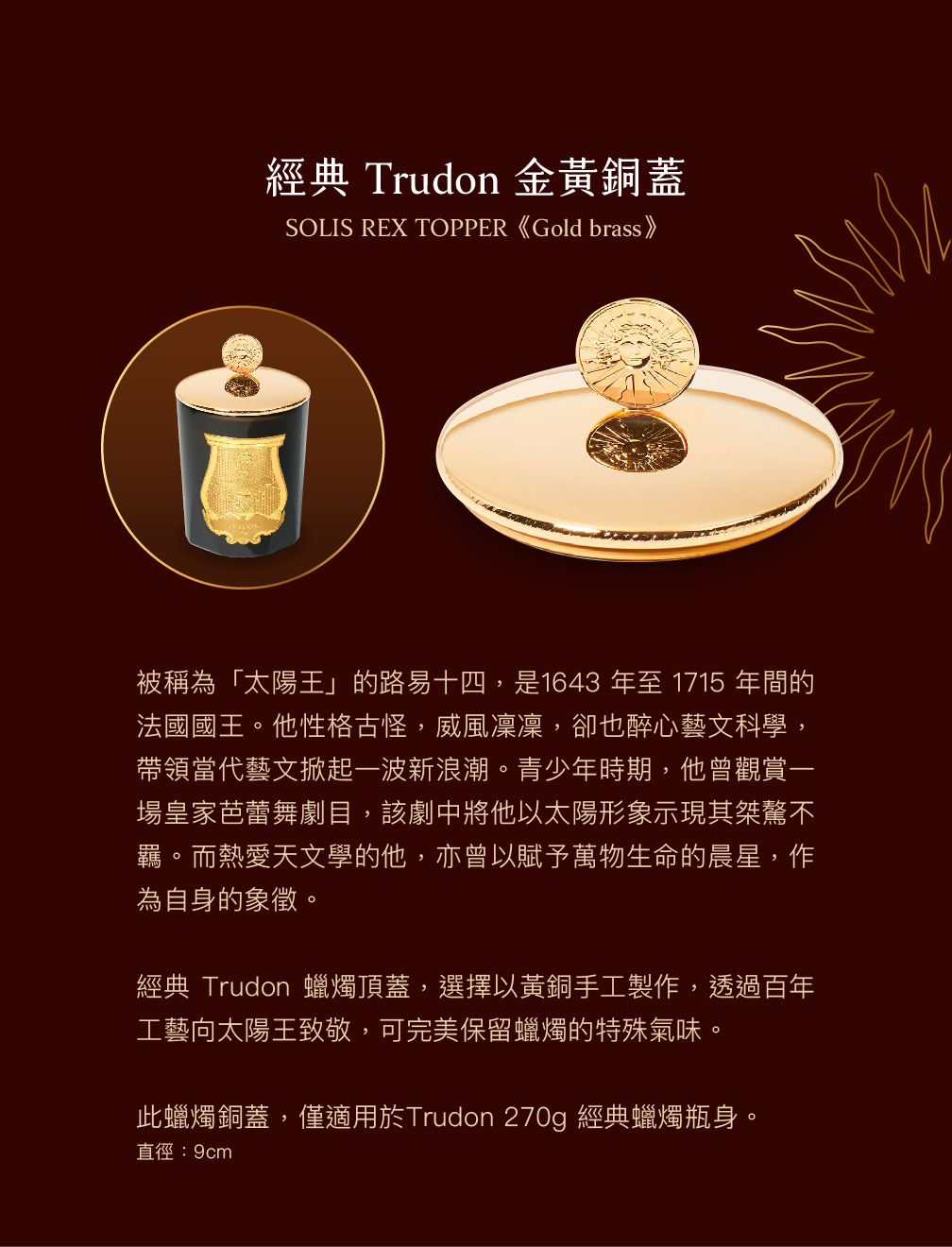擁有百年曆史的工作室中用黃銅手工製作,適用於 Trudon 270g 蠟燭。
