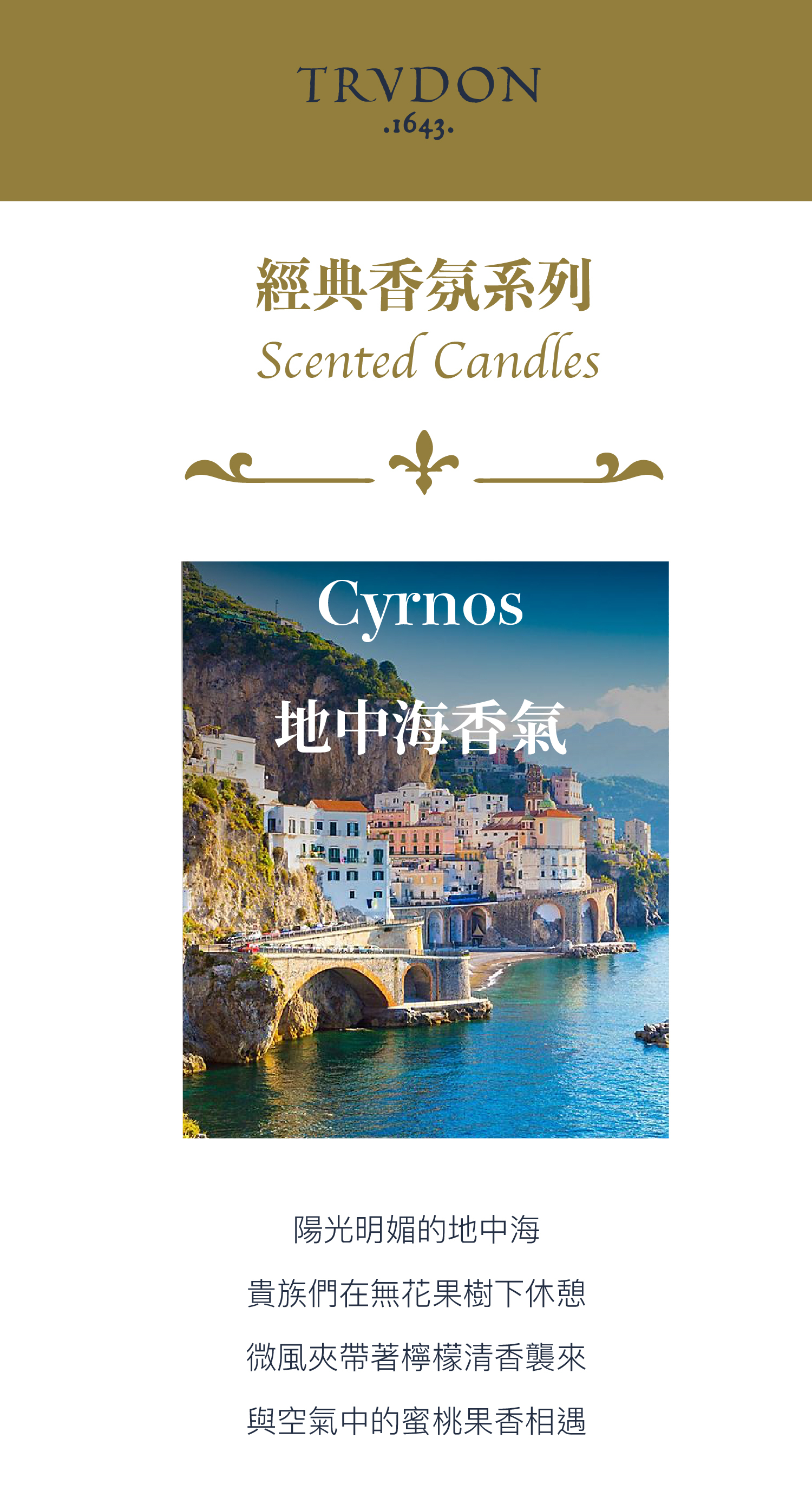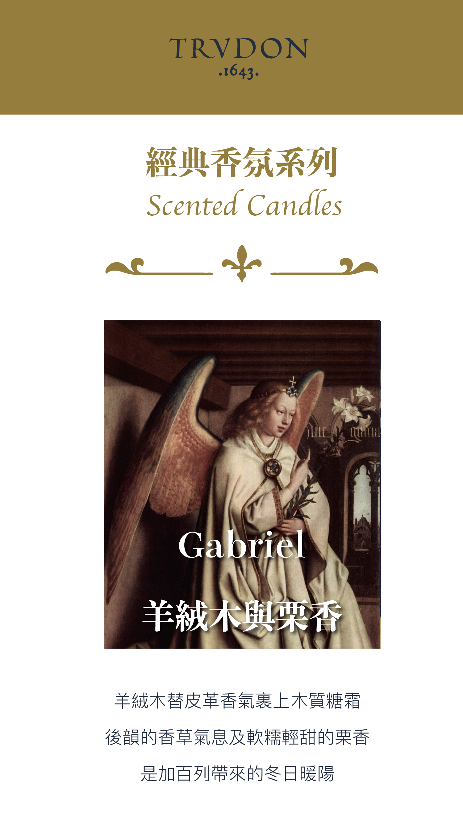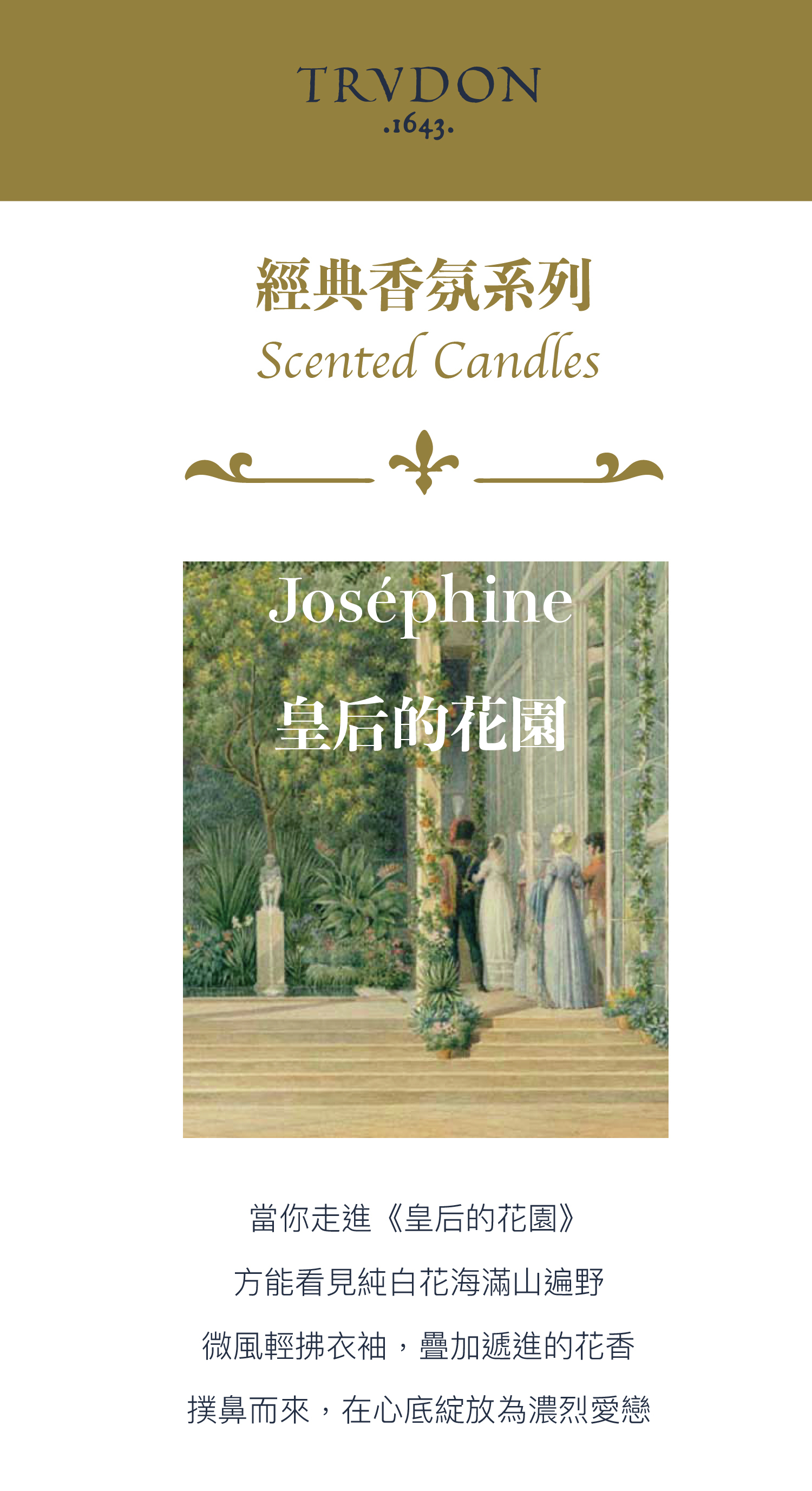 創立於 1643 年的法國皇室香氛品牌 Cire Trudon,作為歷代皇室路易十三、十四、拿破崙及瑪麗皇后等貴族專屬御用蠟工坊,沿襲近四百年傳統工藝,堅持全手工打造,持續將歷史底蘊融進香氣中。