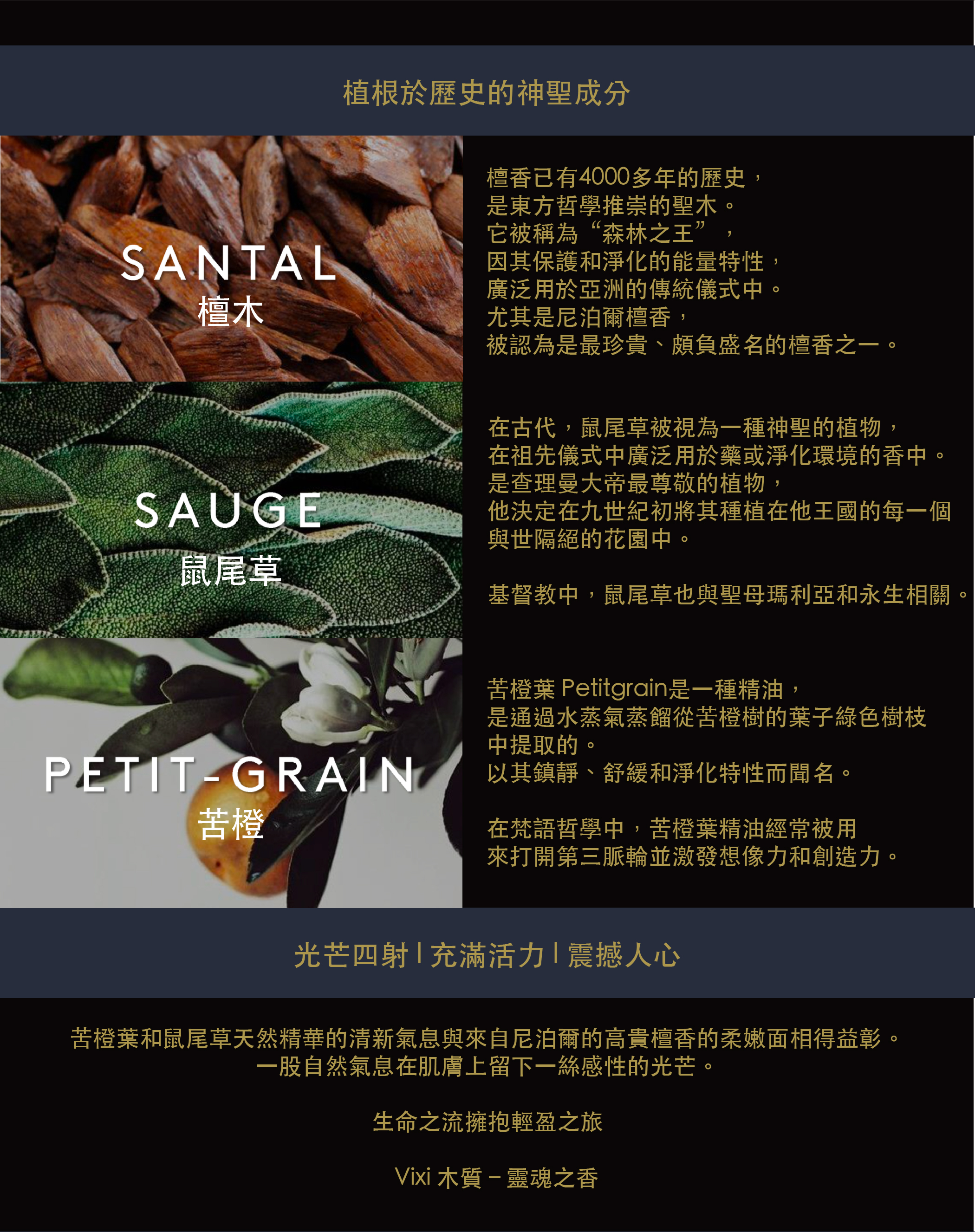 中調:有機尼泊爾檀木、巴爾幹半島鼠尾草天然精油